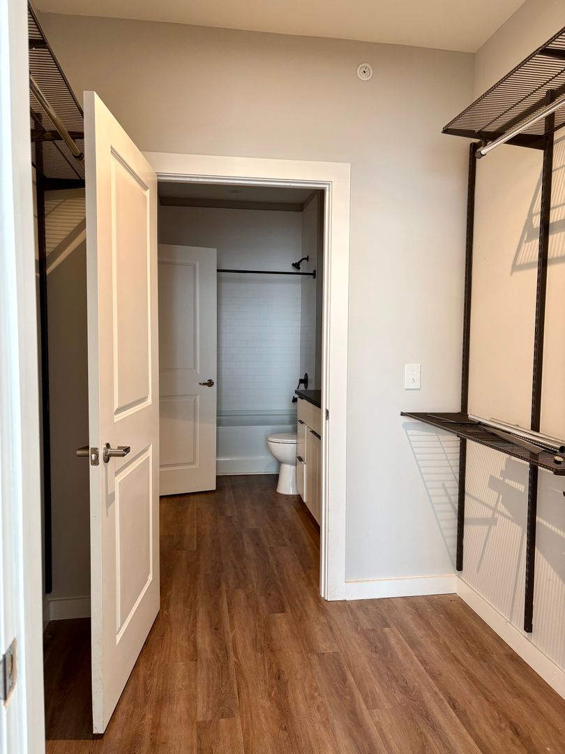 Elevate your lifestyle in this private 2 Bedroom, 2 Bath Unit. This unit includes a premium ELFA closet system. Effortlessly customize the shelves to create your perfect closet. The kitchen shines with a large island perfect for cooking and entertaining, while warm laminate wood floors add elegance throughout.