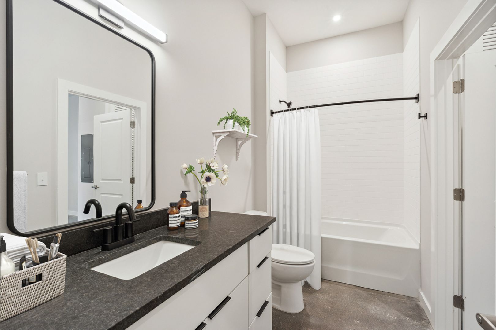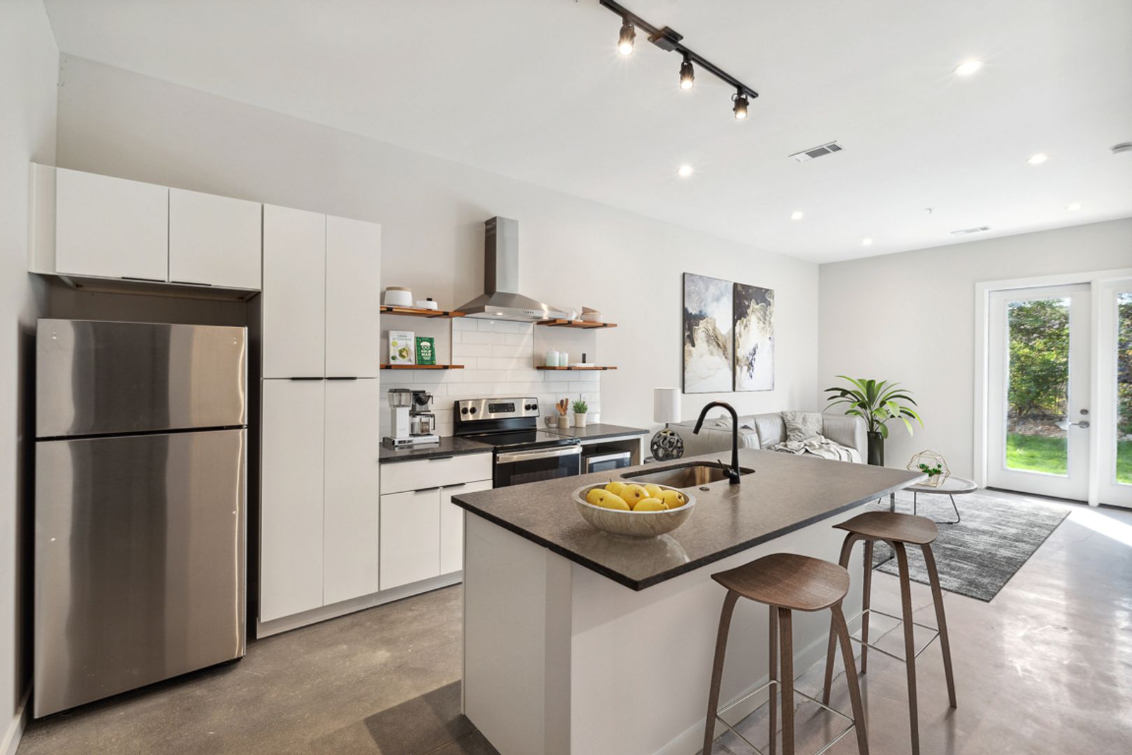 Enjoy direct private patio access for effortless indoor-outdoor flow and quick walks with your furry friend. Soaring 10-foot ceilings and sleek polished concrete floors create an airy, contemporary vibe. The premium ELFA closet shelving system offers highly customizable organization tailored to your needs.
